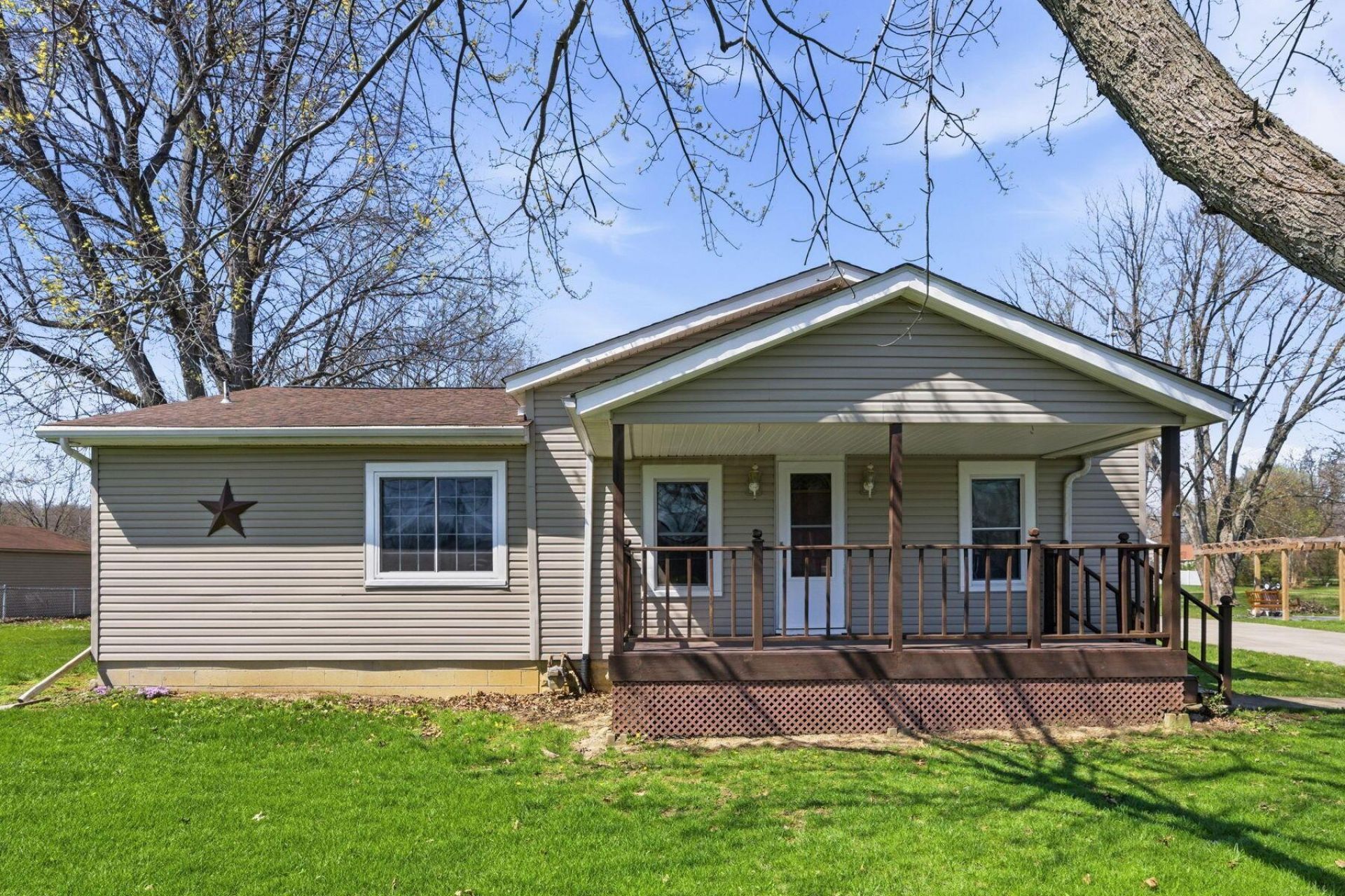 Discover the charm of country living with this beautifully maintained 3-bedroom, 2-bath ranch style home situated on just over an acre of land. This inviting home offers a spacious layout featuring a large living room, a dedicated dining area, and nice kitchen complete with stove and refrigerator, perfect for everyday living and entertaining. The private primary suite is thoughtfully designed with a generous walk-in closet, a full bath, and the convenience of first floor laundry. Two additional bedrooms and a second full bath are located on the opposite side of the home, providing comfort and privacy for family or guests. Freshly painted throughout and enhanced with brand new flooring, this home is truly move in ready. Step outside to enjoy the expansive yard, complete with a cozy fire pit at the back of the property, ideal for relaxing evenings under the stars. Additional highlights include a concrete driveway, 2-car detached garage and a 10' x 16' storage shed for all your tools and outdoor equipment. Don't miss your chance to own this wonderful property. Schedule your showing today before it's gone!