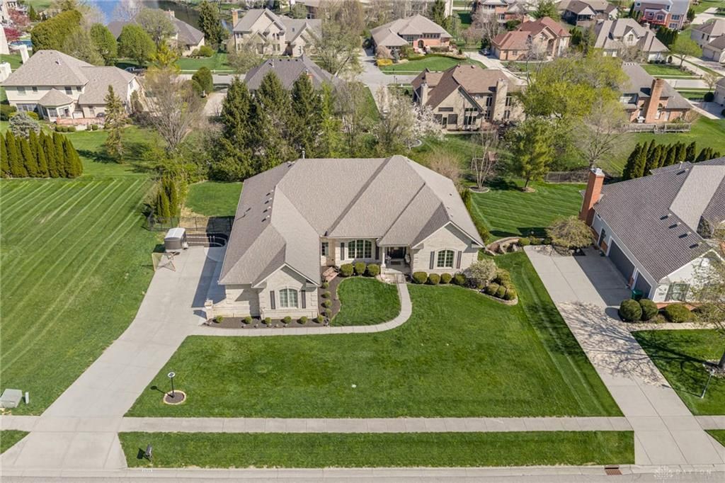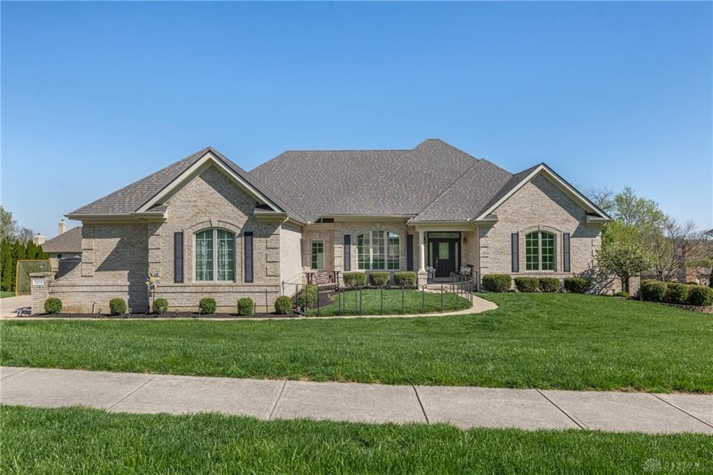 This expansive ranch home features a split-bedroom layout designed for maximum privacy and comfort. Upon entry, the twelve-foot ceilings and massive picture windows create an immediately bright and airy atmosphere. The main level is anchored by solid hardwood flooring that flows through the common areas and into a dedicated home office. The kitchen serves as a central hub, showcasing custom 42-inch maple cabinetry, granite countertops, and a functional butler’s pantry for extra organization. A breakfast nook sits just off the kitchen, providing a quiet spot to start the morning with views of the backyard. This floor houses three of the home's bedrooms, including a primary suite that offers a private retreat with a dual vanity, soaking tub, and rainfall shower, alongside two additional bedrooms and one-and-a-half bathrooms. Transitioning to the lower level, the finished walk-out basement significantly expands the living space. This area is designed for hosting and hobbies, complete with a built-in wet bar and a spacious secondary living area. The lower level also contains the remaining two bedrooms and a third full bathroom, making it an ideal setup for guests. Practicality is a major highlight here, as the basement includes an additional 924 square feet of unfinished space, providing massive amounts of storage rarely found in similar homes. The exterior of the home offers multiple levels of outdoor enjoyment. You can relax on the elevated deck overlooking the property or move down to the rear patio for more shaded lounging. The 0.47-acre lot is fully fenced, creating a secure and usable space for play or gardening. The home is positioned for easy travel throughout the region, offering quick access to US-35 and I-675. This allows for short commutes to Beavercreek, Bellbrook, and Dayton. This move-in-ready home combines high-end architectural details with the everyday functional needs of a spacious, well-cared-for property.