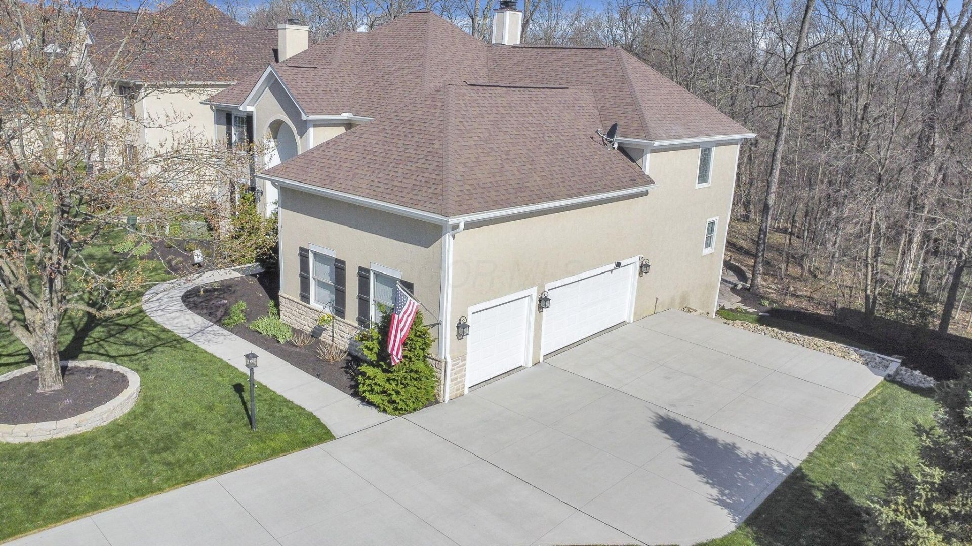OPEN SAT 12-2 & SUN 2-4 PM. Impressive and meticulously maintained 4-5 bedroom, 4.5-bath home nestled on a premium cul-de-sac lot. This exceptional residence offers approximately 3,358 square feet of above-grade living space plus 1341 square feet in the finished walk-out lower level - 4700 square feet of versatile, high-quality living.Wake each morning to breathtaking year-round views of the serene .4-acre wooded ravine lot backing to HOA-owned treed lot with stream. A dramatic two-story foyer and open two-story great room offer abundant natural light streaming through over-sized windows throughout the home. The main level features 2 flexible den/home office spaces perfect for remote work or quiet study.The eat-in, fully-applianced kitchen opens to a breakfast area highlighted by a double-sided fireplace overlooking the scenic backyard with access to multIple outdoor living areas (deck and 2 patio areas). Luxurious owners suite includes a generous walk-in closet (10x22), tray ceilings and a private en-suite providing a spa-like feel w/ Jacuzzi soaking tub, walk-in shower, private lav & dual vanities. Additional 3 bedrooms are good-sized with 2 large full baths (private and jack-n-jill). Partially finished FULL 12.5-course walk-out lower level presents flexible living w/ multiple gathering spaces - family room, wet bar, theatre room, 5th bedroom, & a full bath PLUS excellent storage areas. Additional highlights include a large first-floor laundry room w/ utility tub, 3-car side-load garage with loads of storage, brand new carpet, and fresh paint.Located in desirable Lewis Center, you're perfectly positioned to enjoy some of the areas best amenities - neighborhood parks, bike and walking paths, & minutes from shopping, dining, and entertainment at Polaris Fashion Place, and is convenient to major highways. This move-in-ready Truberry home is perfectly positioned for modern living - schedule your showing today! See a2a remarks.