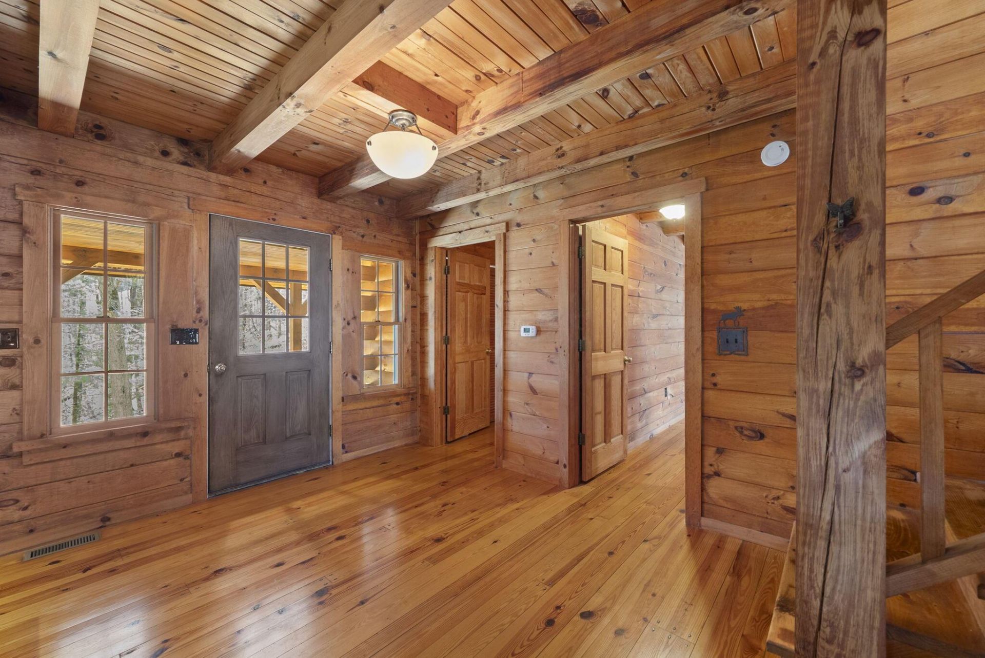 Tucked into 1.62 wooded acres in Hide A Way Hills, this custom-built log cabin blends warmth, character, and unmistakable atmosphere. Built in 2004, the 3-bedroom, 2.5-bath home offers the kind of setting that feels both grounded and transportive--private, soulful, and full of charm. Inside, pine floors, antique nails, and a wood-burning fireplace with gas start bring texture and authenticity, while the first-floor owner's suite adds everyday ease.An expansive 8x35 front porch sets the tone, made for slow mornings and quiet evenings, while the screened porch invites you to lean into the surrounding woods and all the moody, cabin-core vibes that make this property feel so special. A 2-car garage and whole-house generator add practicality to the romance, creating a retreat that is as functional as it is unforgettable.