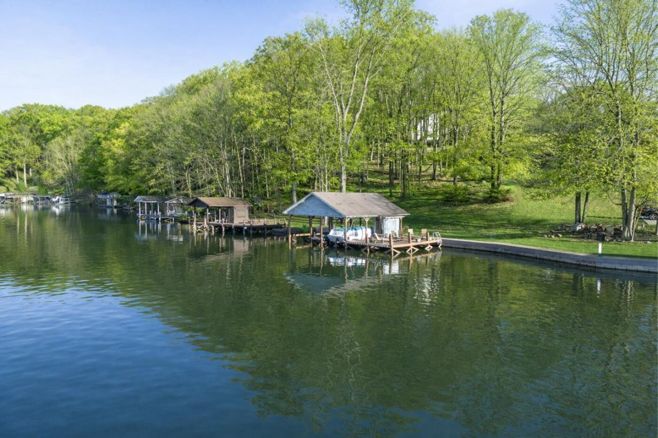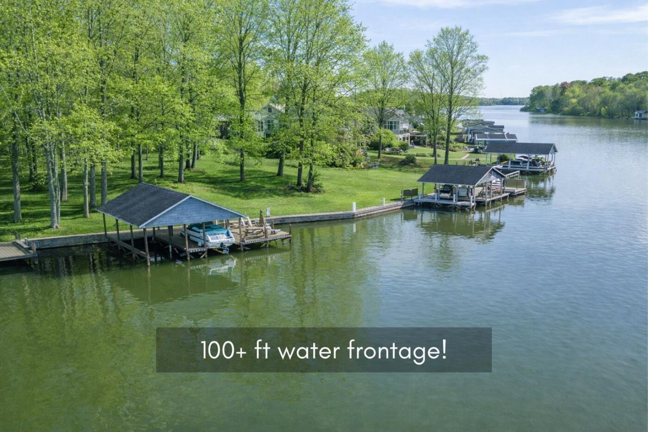 Lakefront living designed for relaxation and entertaining. This custom-built Amish home offers 4 bedrooms, 3 baths, comfortable living spaces, and beautiful water views throughout. The spacious kitchen with oak cabinetry and appliances opens to a warm four-season room, perfect for morning coffee or quiet evenings overlooking the lake. Step onto the large rear deck or enjoy the covered lower deck with steps leading down to the dock. The vaulted living room features a striking floor-to-ceiling brick fireplace that creates a cozy focal point. The private primary suite includes its own bath and two walk-in closets, with an additional bedroom on the main level. The finished lower level offers great flexibility with a large family room with a second propane gas-log fireplace, two additional bedrooms, a full bath, recreation room, office space, and workshop area. Outside, enjoy 101 FT of water frontage with a safe swimming area, 2024 Amish-built seawall and 2-bay covered boat dock. Also, enjoy the wonderful 3-car garage with workshop space. We got this on early so you can enjoy the start of the boating season!! .